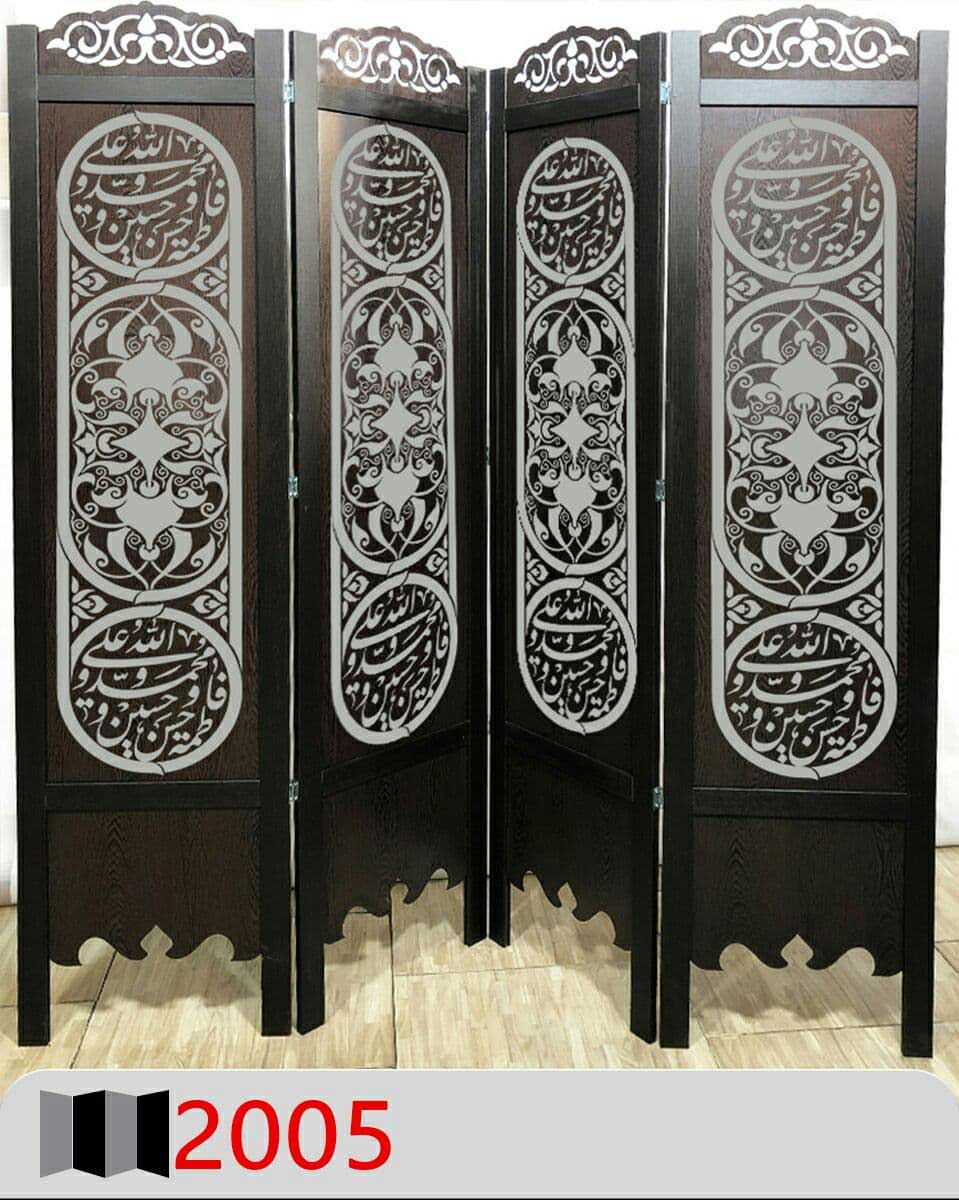 پاراوان لیزری حک پرکار کد 2005 طرح مذهبی پنج تن اسلیمی , شیک- چهار لنگه، ارتفاع استاندارد 180 سانتیمتر، عرض هر لنگه 45 سانتیمتر