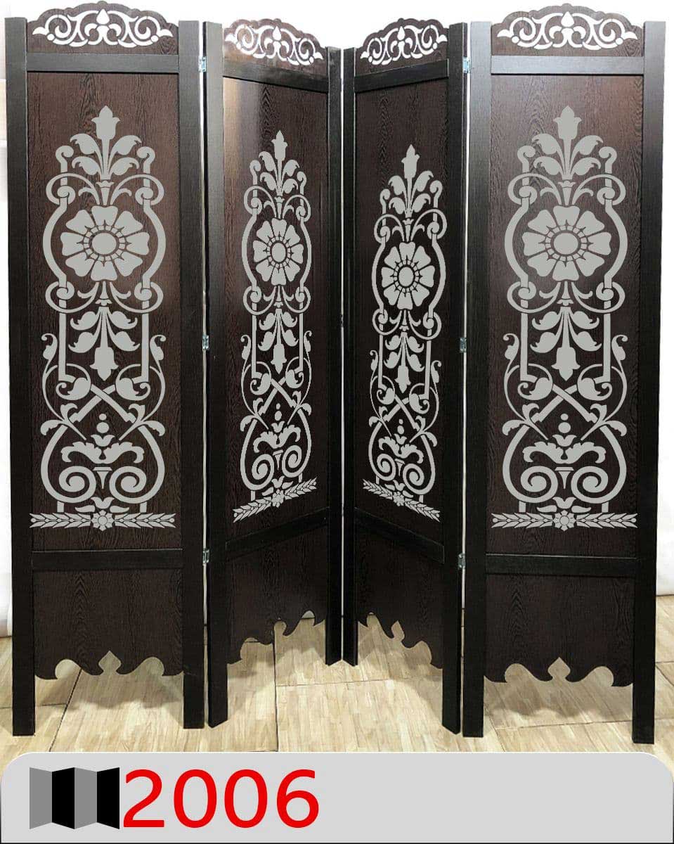 پاراوان لیزری حک پرکار کد 2006 طرح گل و تاج اسلیمی , شیک- چهار لنگه، ارتفاع استاندارد 180 سانتیمتر، عرض هر لنگه 45 سانتیمتر