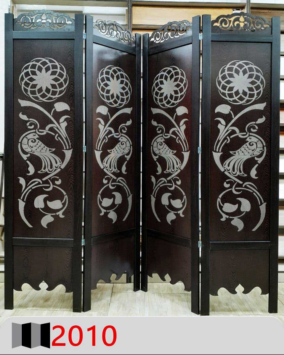 پاراوان لیزری حک پرکار کد 2010 طرح گل و مرغ اسلیمی , شیک- چهار لنگه، ارتفاع استاندارد 180 سانتیمتر، عرض هر لنگه 45 سانتیمتر